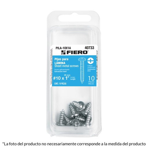 PILA-8X1-1/2A | Blíster con 10 pijas para lámina, #8 x 1-1/2', Fiero